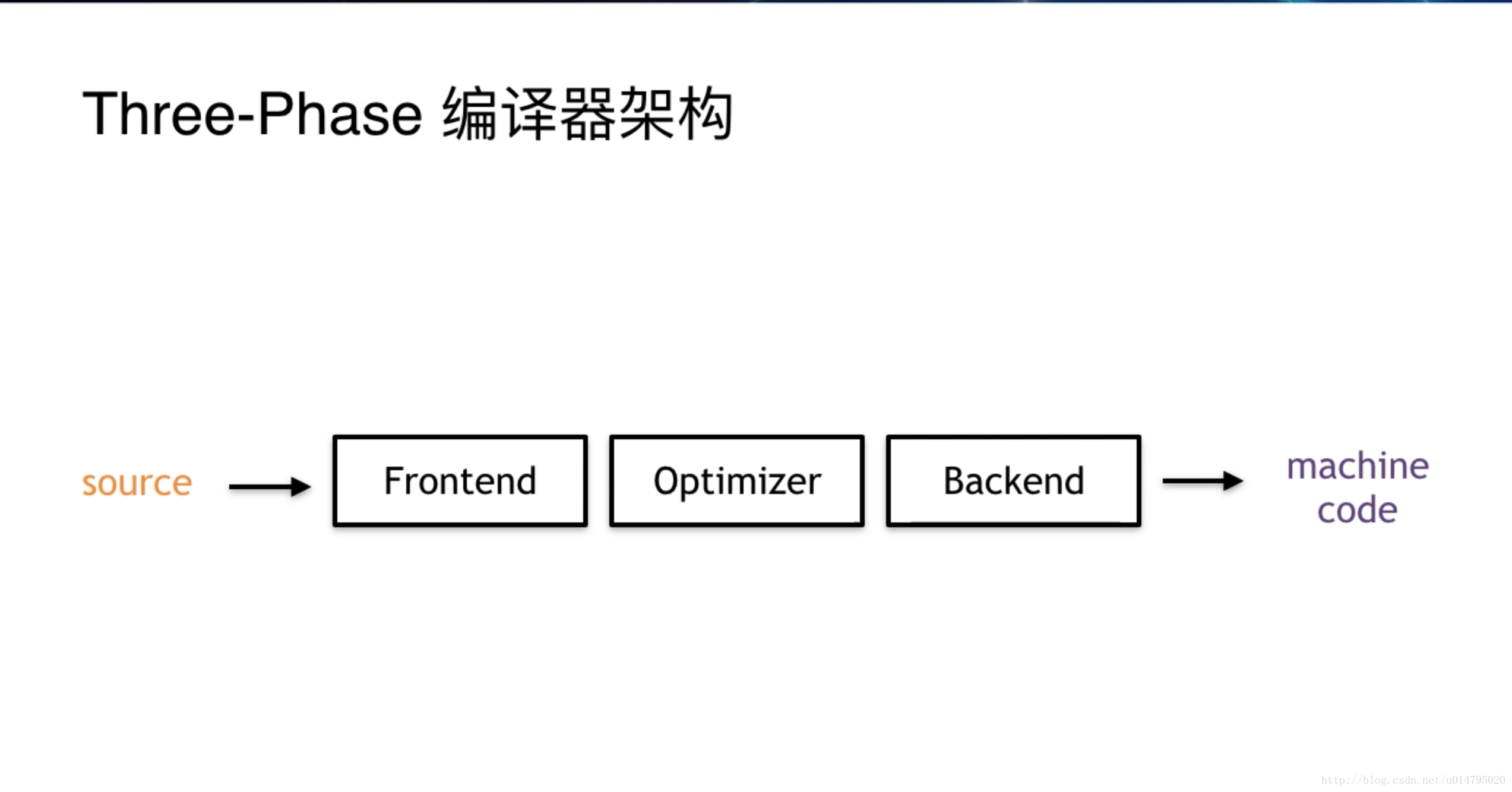 source是我们的源代码,进入编译器的前端Frontend;在前端完成之后,就进入优化器这一模块;优化完成之后进入后端这一模块;在这全部完成之后,根据你的架构是x86,armv7等生产机器码。但是会有一个问题: